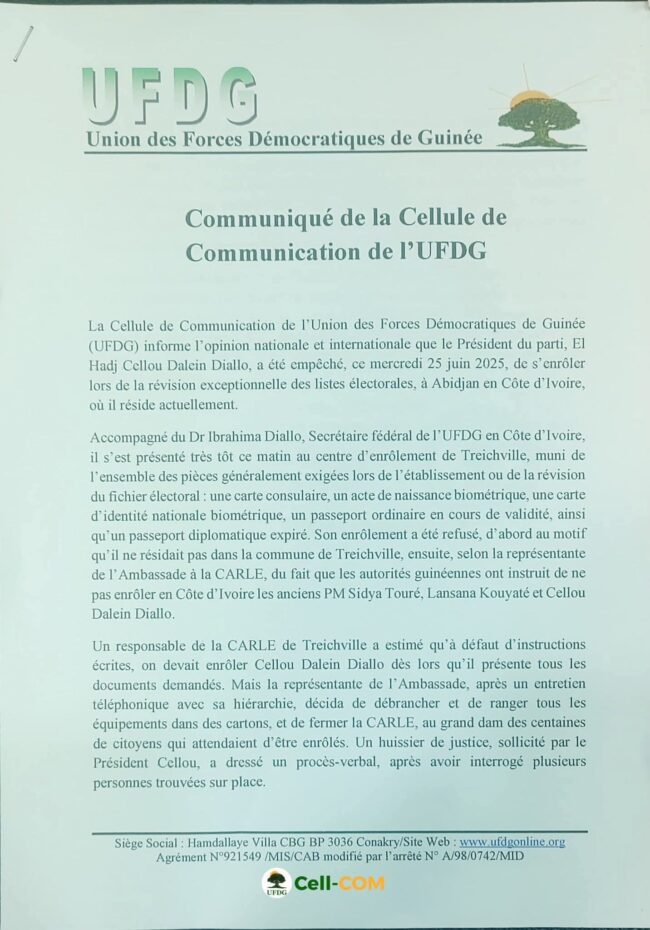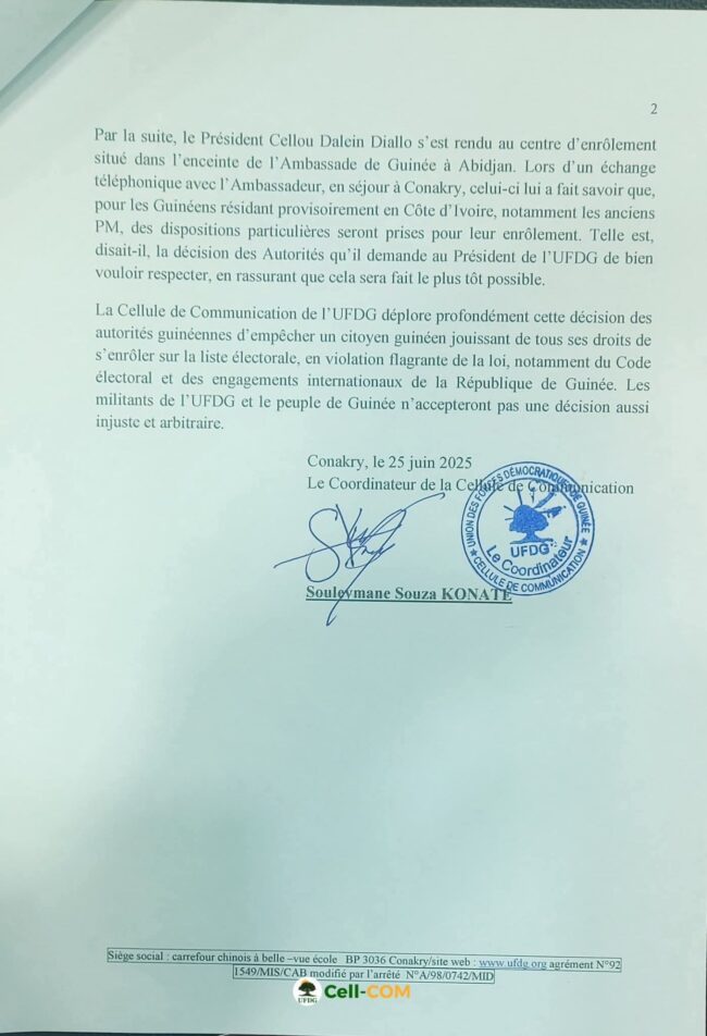 Lisez ci-dessous la déclaration complète de la cellule de communication de l’UFDG :