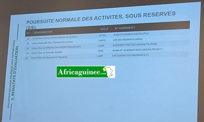 « Nous avons fait l’effort de nous conformer aux éléments d’appréciation qui avaient été concoctés par le MATD. Ma déception est de constater qu’un instrument juridique est utilisé alors qu’il n’est pas en vigueur. Il s’agit de la loi sur le financement public des partis politiques. Une loi quasi inexistante. Certes elle a été discutée lors de la dernière législature, avant la prise du pouvoir par le CNRD. Cette loi n’a fait l’objet d’aucune promulgation, d’aucune publication au journal officiel de la République. Je l’ai déjà dit dans les ministère de l’administration du territoire, il est inconcevable, inacceptable que l’on évalue les partis politiques sur la base d’instruments et d’éléments d’application non opposables à un justiciable ou à une entité quelconque. Ça, c’est un manquement grave qu’il faut dénoncer. Le reste nous nous réjouissons d’appartenir à la liste des 24 partis politiques autorisés à exercer sur l’ensemble du territoire sous réserve de l’organisation de notre congrès qui ne dépend plus de nous parce que nous sommes à plus de 95% du processus d’organisation de congrès. n’y était là suspension de nos congrès fédéraux et du processus d’organisation du congrès national par le tribunal de première instance de Dixinn, vous le savez nous avons convoqué notre confrère le 19 et 20 avril 2025. Donc, cela dit, quelque peu dessus mais plus ou moins satisfaits du résultat », réagit Joachim Baba Millimono, coordinateur de la cellule de communication de l’UFDG.