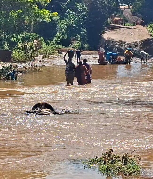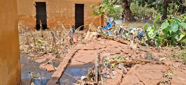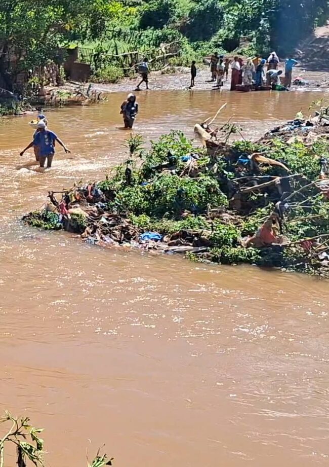 « Le lit de la rivière est presque bouché. Beaucoup de gens y jettent leurs ordures et la terre issue des constructions finit par s’y accumuler. Résultat : la rivière déborde. Le pont est presque endommagé, l’eau passe au-dessus et a coupé le passage », indique-t-il.