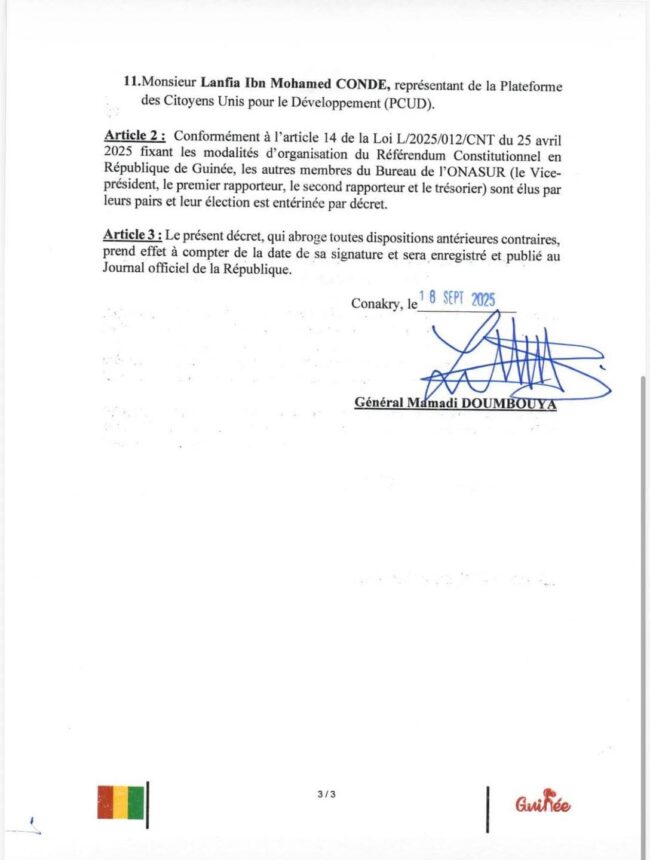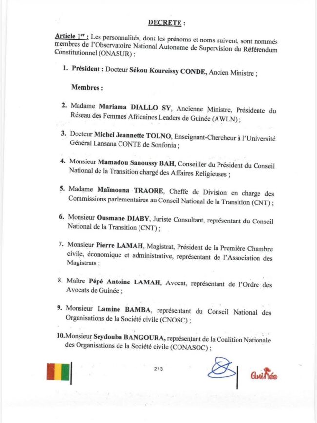 C’est par décret présidentiel que Dr Sékou Koureissy Condé, ancien ministre, et Me Pépé Antoine Lamah, éminent avocat, ont été nommés à l’Observatoire National Autonome de Supervision du Référendum constitutionnel (ONASUR). Dr Sékou Koureissy Condé en assure la présidence.